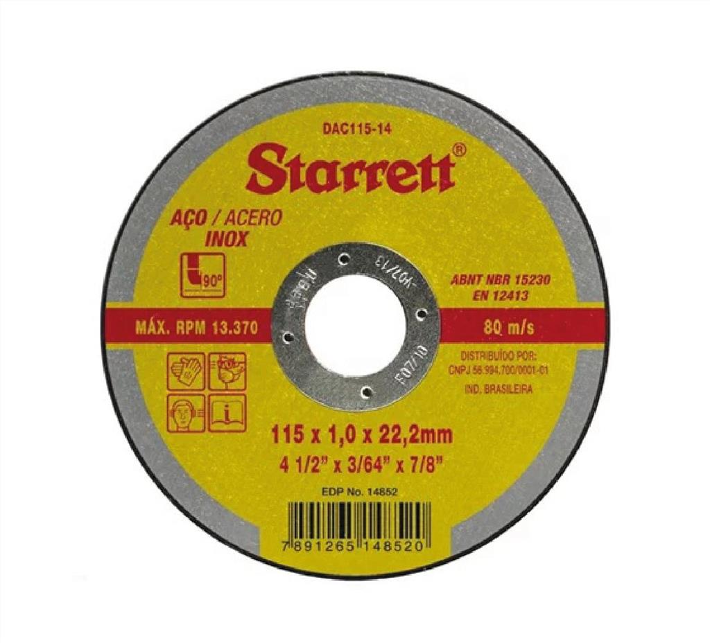 DISCO CORTE INOX 4.1/2X1MMX22MM STARRET DAC115