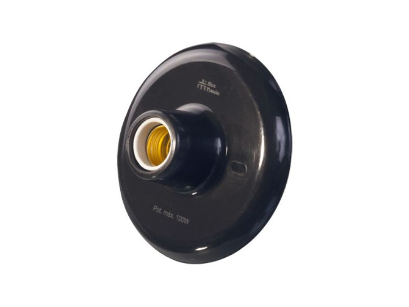 PLAFON B/PORCELANA PRETO 100W MECTRO 30126