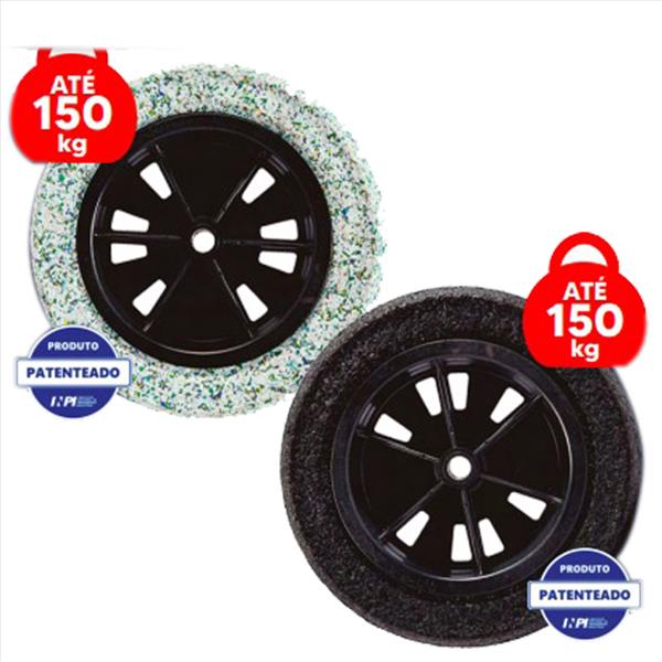 COM ADAPTADOR EIXO UNIVERSAL 1/2″, 3/4″, 5/8″ E 1′ BORRACHA EXPANDIDA RECICLADA… LINHA LEVE 150KG CARGA.